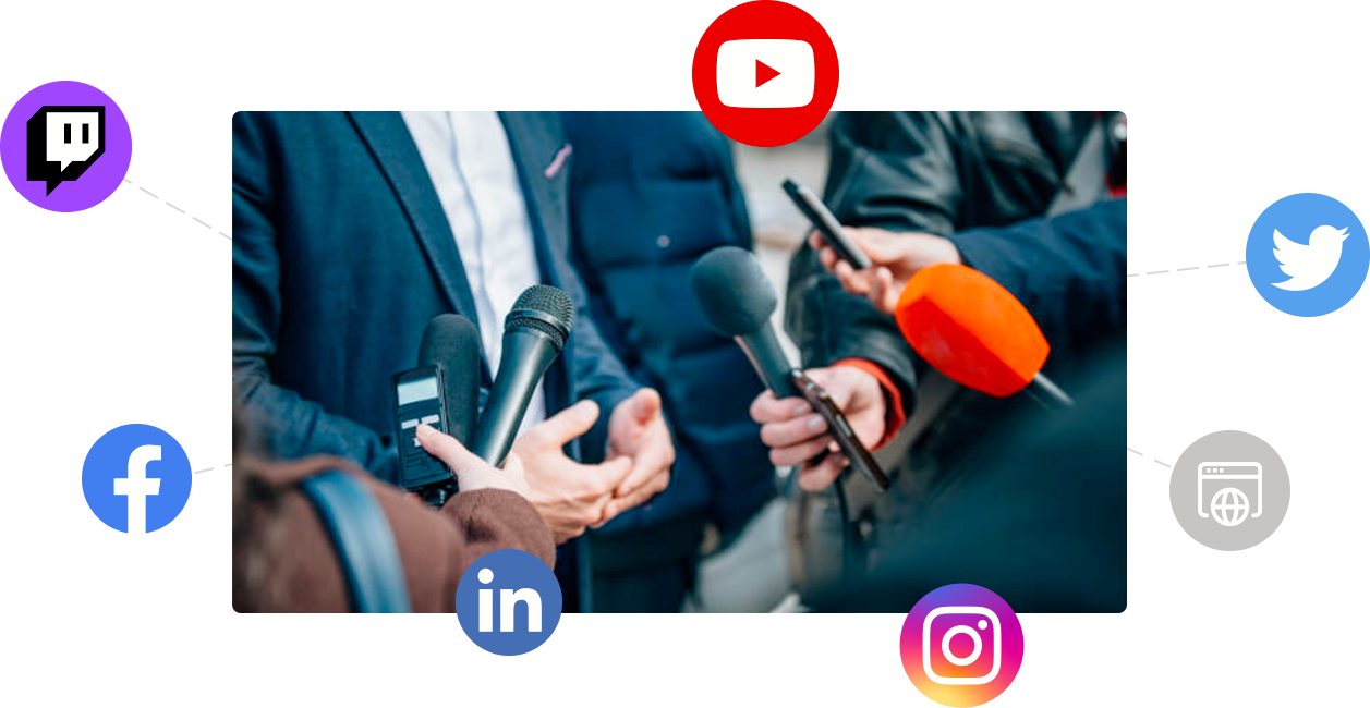 Ruedas de prensa deportivas, políticas o de cualquier ámbito para informar en directo a los espectadores